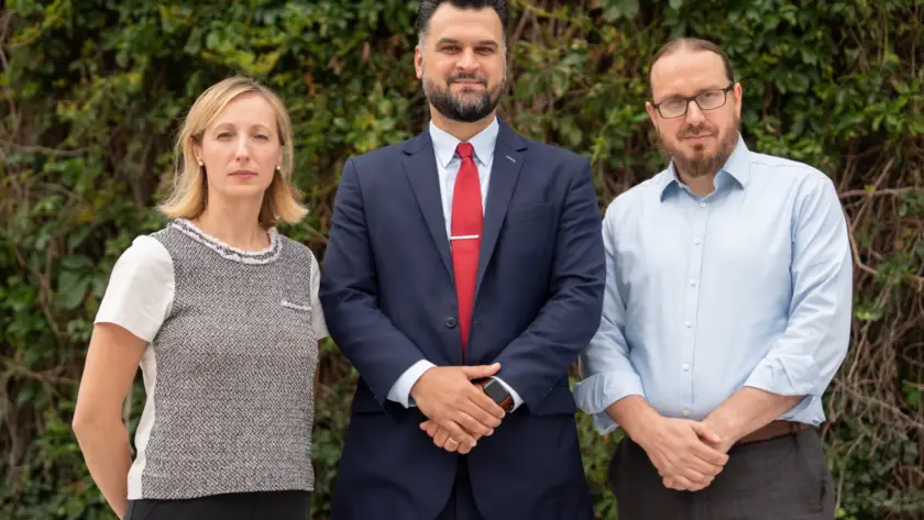 Members of the Srebrenica Remembrance Coalition. From left: Adna Karamehic, director of the Center for Bosnian Studies, attorney Nedim Ramic and Srebrenica massacre survivor and local social studies teacher Elvir…